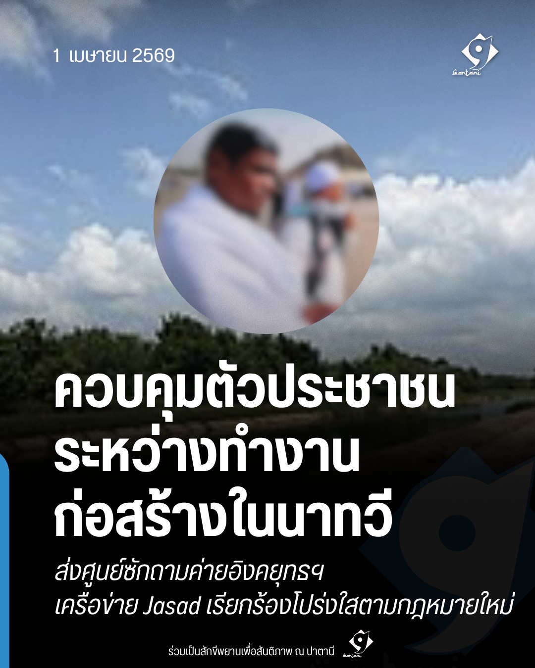 ควบคุมตัวชายวัย 41 ปี ระหว่างทำงานก่อสร้างในนาทวี ส่งศูนย์ซักถามค่ายอิงคยุทธฯ