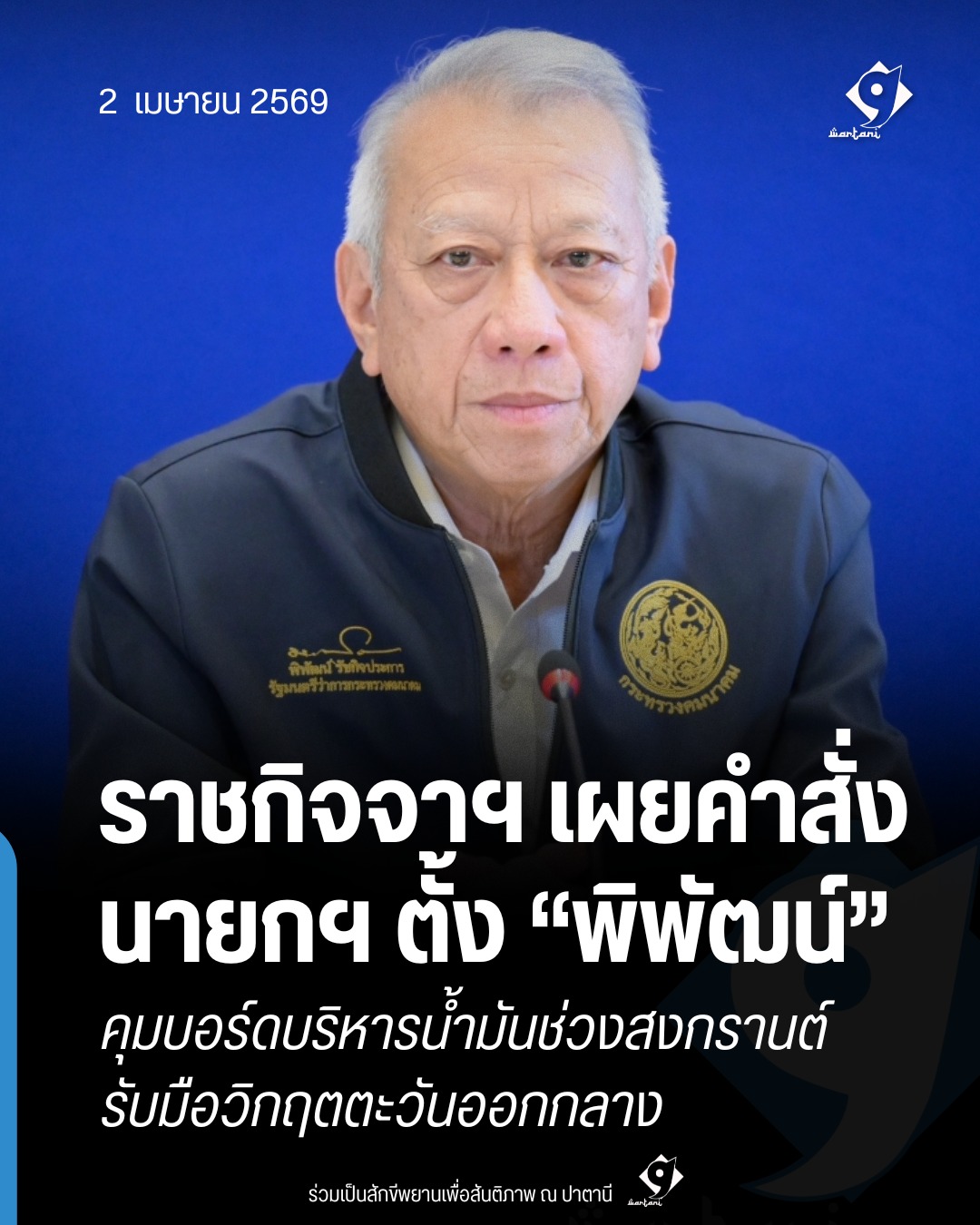 ราชกิจจาฯ เผยคำสั่งนายกฯ ตั้ง “พิพัฒน์” คุมบอร์ดบริหารน้ำมันช่วงสงกรานต์ รับมือวิกฤตตะวันออกกลาง