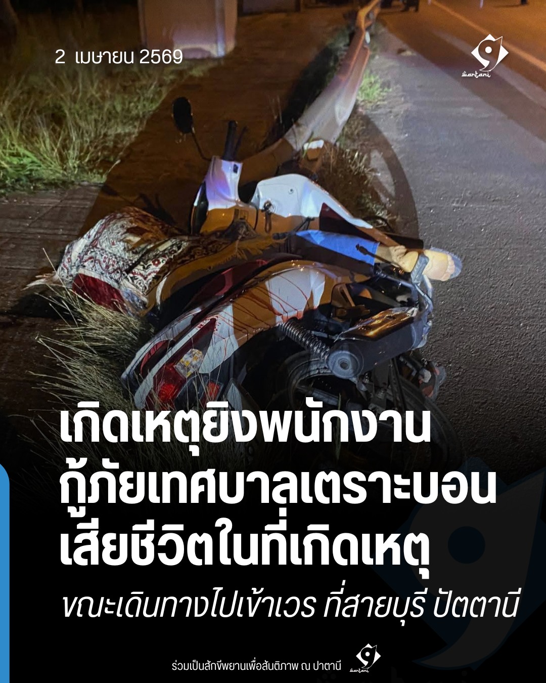 เกิดเหตุยิงพนักงานกู้ภัยเทศบาลเตราะบอน เสียชีวิตในที่เกิดเหตุ สายบุรี ปัตตานี